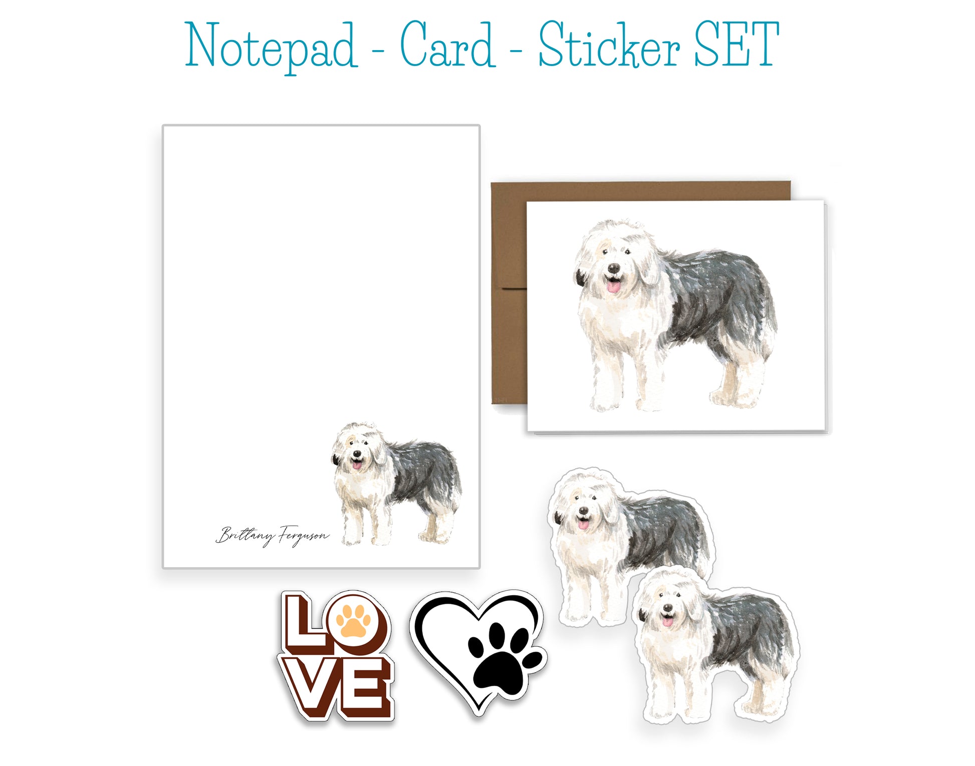 Old English Sheepdog Dog Notepad, Card and Stickers
