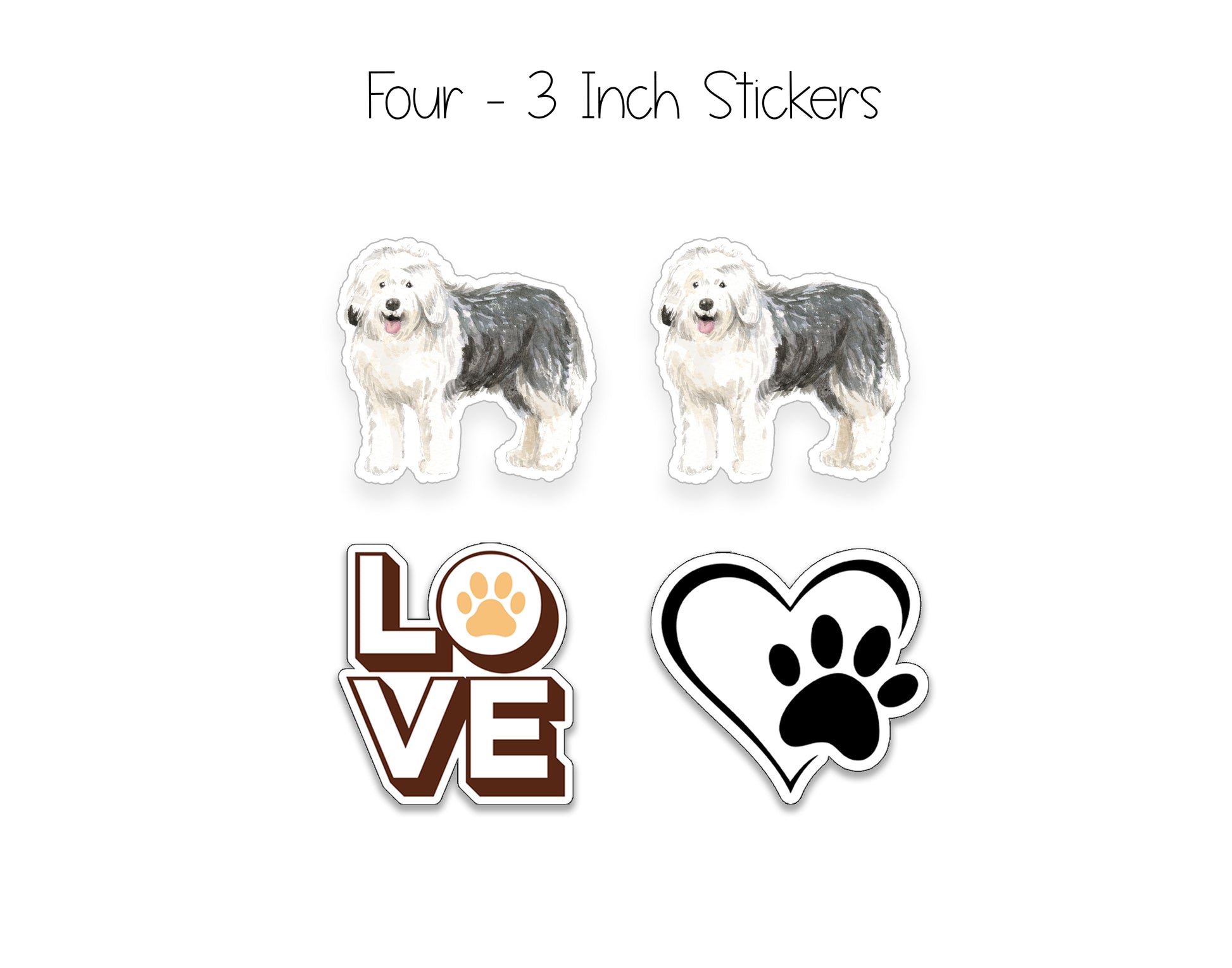 - Two Matching 3 Inch Waterproof Old English Sheepdog Dog Stickers