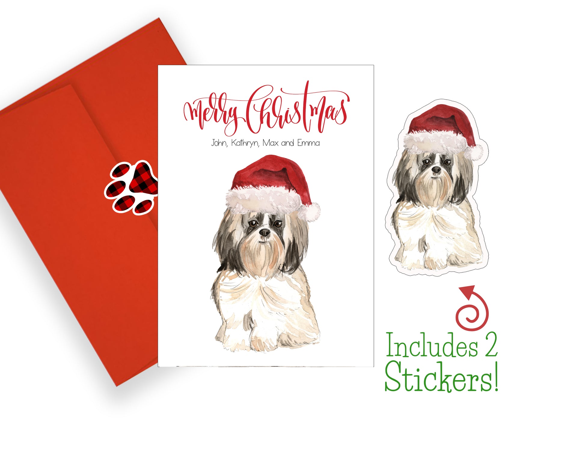 These charming 5x7 Watercolor Dog Christmas Cards feature a delightful hand-painted dog design, perfect for spreading holiday cheer. Each card comes with matching envelope seals and two coordinating stickers, adding a special touch to your festive greetings. Crafted on premium cardstock, these cards combine whimsy and warmth, making them ideal for dog lovers and anyone who appreciates unique holiday stationery.